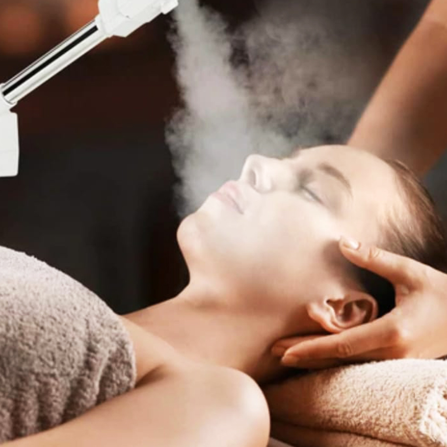 Dopo di che si passa alla vaporizzazione: vapore caldo (anche ozono) per aprire bene i pori e permettere ai prodotti di penetrare meglio e agevola la successiva fase di spremitura: eliminazione dei punti neri, manuale o con supporto di strumento a ultrasuoni.